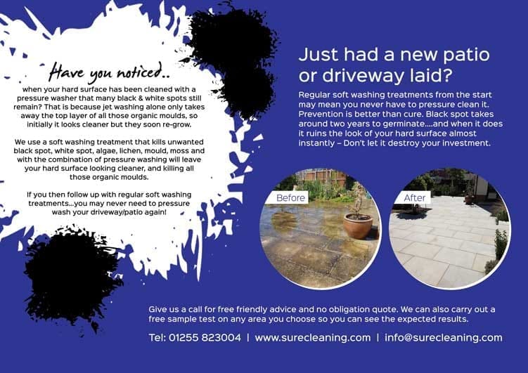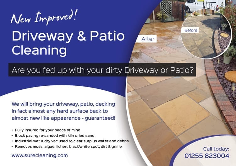 Sure Cleaning appreciates that the initial outlay for your hard surface can be expensive and difficult to maintain. Our cleaning technique will return your driveway or patio back to looking ‘as good as new’. The cleaning method used by Sure Cleaning is environmentally friendly.